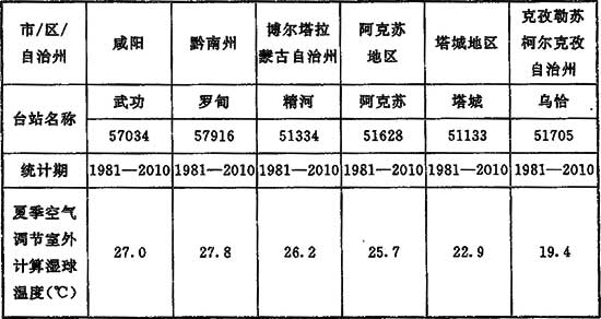 表15 部分臺站夏季空調(diào)室外計算濕球溫度參考值