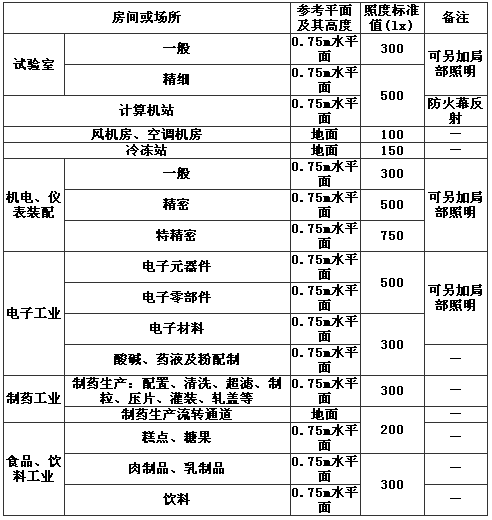 表11 部分工業(yè)建筑一般照明標(biāo)準(zhǔn)值