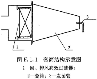 套筒(測定回、排風高效過濾風口時需要使用,罩住整個入口,使檢漏范圍包括邊框,長度應使通過氣流時間為0.5s~1s,見圖F.1.1)。