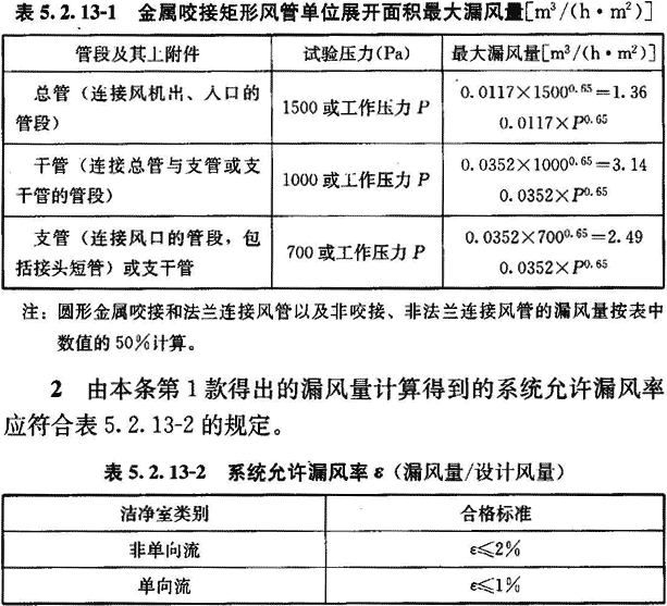 8 風(fēng)管漏風(fēng)量和漏風(fēng)率應(yīng)符合本規(guī)范表5.2.13的規(guī)定。